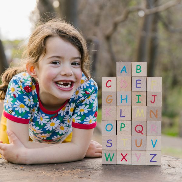 A deserted island [I], colourful rainbows[R], and a fantastic fox [F], just some of the beautiful illustrations you’ll find on these high-quality, wooden blocks. Little ones will be delighted as they discover each side of these open-ended play cubes has an illustration that corresponds with the letter presented in both capital and lowercase.