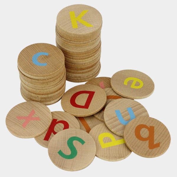 The matching alphabet 52 wooden disc set is printed with colourful lower and uppercase alphabets. The wooden discs are a unique resource made from natural beechwood great for children to develop early literacy skills including letter recognition, letter sounds, forming words as well as the difference in upper and lower-case letters. A fun way to introduce literacy while encouraging children to feel positive and confident while they learn through play.