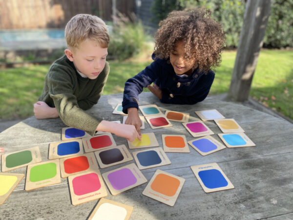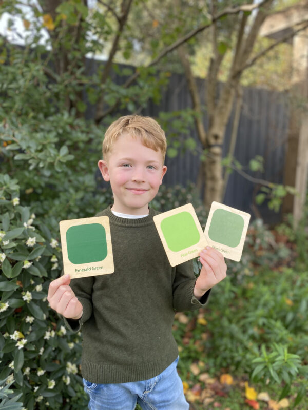 Perfect for introducing colour sorting at home this set goes way above and beyond in colour learning by exploring possible colour combinations, such as what would happen if you add some Eggshell White to Boysenberry Pink? Finding items in the garden or home that match the colour or belong to the same family of colour. Hours of open ended play is available with these eye catching cards.