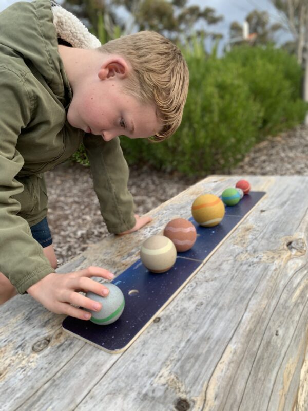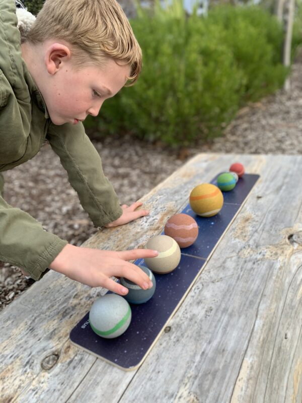 Discovering Space is exactly that, an engaging and colourful educational resource not only showing where the planets sit in relation to the Sun, but the hardy cork balls (wood have nothing on these in toughness!) are scaled to show which are biggest to smallest relative to each other. Not completely to scale or the Sun wouldn’t fit in your street!