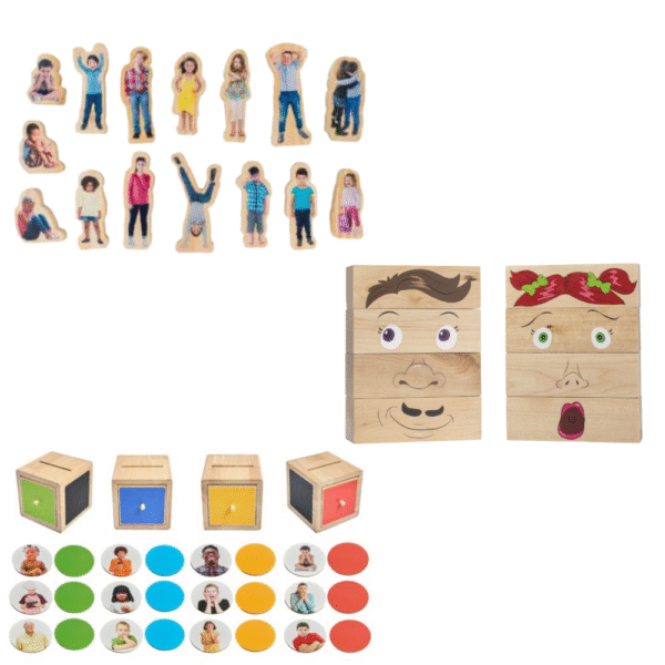 This high-quality colourful wooden set includes 15 wooden people. Each piece is printed with a photo of a child displaying a range of emotions including crying, frustration, sadness to excitement, happiness and everything in-between. This set gives children the opportunity to express and manage their own feelings, important in developing self-reliance and resilience. A fun way to introduce and recognize emotions while encouraging children to feel positive and confident while they learn through play.