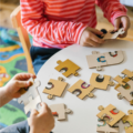 This one is an innovation in the world of puzzles – we’ve created an open ended puzzle! There is no right or wrong way on how to put it together. Make it into the rectangle as printed on the cover of the box or create lines with twist and turns. The way the pieces are connected is completely up to the abilities of the child, meaning that it’s suitable for many ages. Connect the faces to the hat or hair of your choice and have fun creating a community of people. A great way to open up discussions around diversity and inclusion.