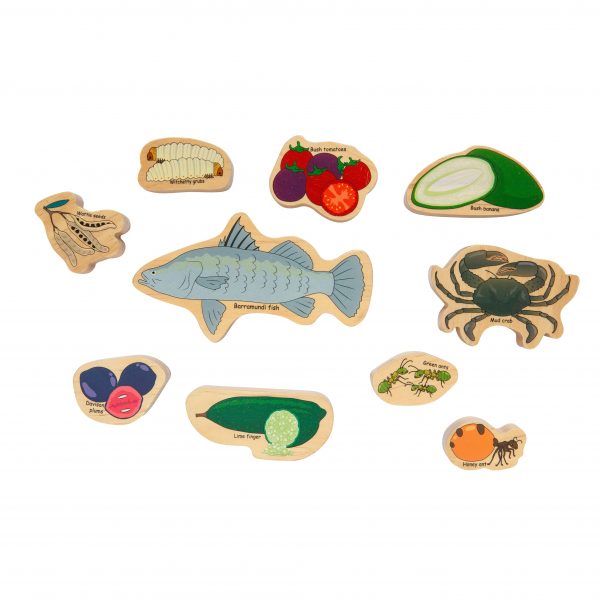 This Australian themed set will take children to an imaginary trip to Australia while learning about the Indigenous culture. This set depicts traditional foods such as bush bananas, witchetty grubs and green ants, just to name a few. A fantastic toy to aid and encourage role-playing while opening conversations about Australia’s traditional landowners and the Indigenous culture. Learning through play encourages children to learn, develop and grow while having fun! Images are printed using non-toxic heat transfer technology and sealed with a clear matt varnish to ensure they last for years to come!
