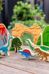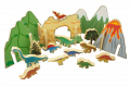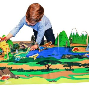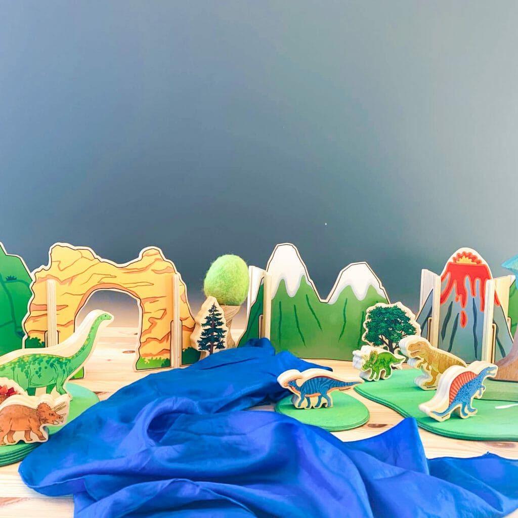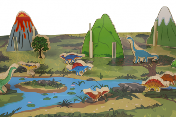 Watch the dinosaurs come alive with this colourful prehistoric small world wooden set that includes 10 dinosaurs favourites (T-Rex, Triceratops, Spinosaurus and Brachiosaurus to name a few). This set comes complete with a prehistoric landscape of mountains, a volcano, trees and cliffs with a cave. Your young adventurer’s imagination will be running wild role-playing while developing emotional and language skills. The beautifully illustrated images are printed using non-toxic heat transfer technology and sealed with a clear matte varnish to ensure they stay vibrant for years to come.