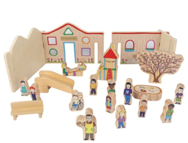 Finally a wooden set that combines creative play with classic kindergarten scenes your child will cherish. Featuring gardens, quiet corners, and play areas, this set inspires imaginative storytelling. A great tool to introduce your little one to the fun to be had a childcare or kinder.
