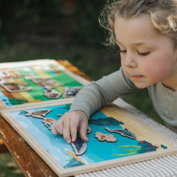 Discover where wild creatures live and play with Homes of the Wild (Magnetic) – an interactive wooden 43-piece magnetic set that brings the world’s habitats to life!