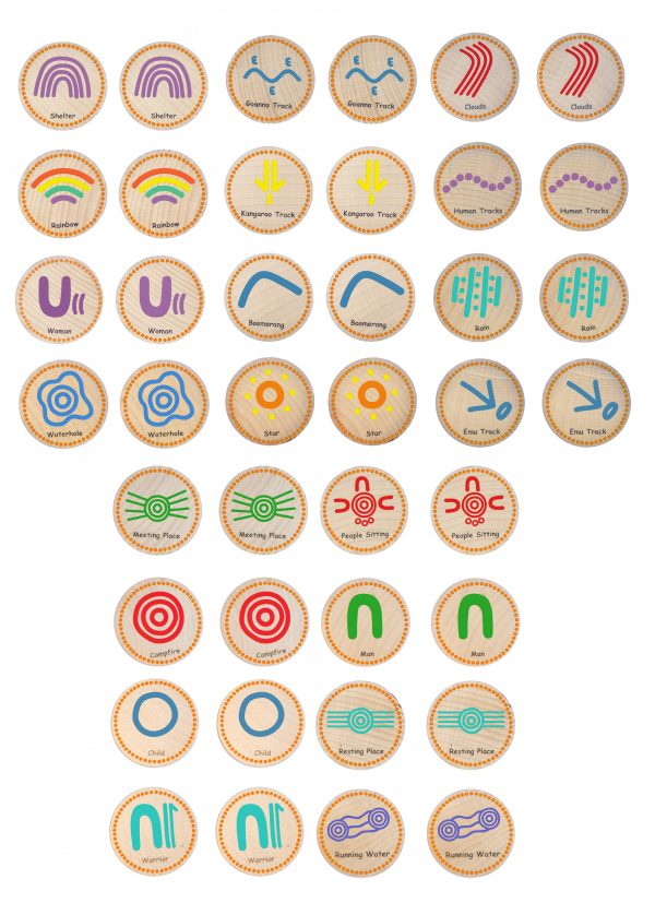 Designed in collaboration with award-winning Aboriginal artist De Greer-Yindimincarlie, each disc contains an Indigenous symbol such as meeting place, waterhole and rainbow just to name a few. These discs are a great toy to learn about the Indigenous culture, opening discussions around the traditional Australian landowners, as well as a fun game of matching pairs. A fun way to introduce Indigenous symbols while encouraging children to feel positive and confident while they learn through play.