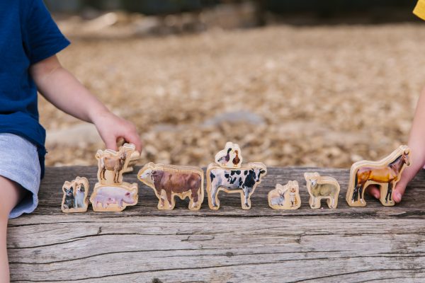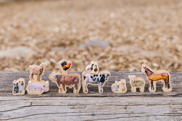 A beautifully crafted toy set consisting of 10 high-quality wooden animals. Brilliant for encouraging role play and story-telling to help develop language skills while supporting creative play. This toy farm set includes a horse, cow, chicken, pig, dogs, and so much more. Each solid wood animal is smooth and lightweight, designed to be easily grasped by little fingers. Images are printed using non-toxic heat transfer technology and sealed with a clear matt varnish to ensure they last for years to come!