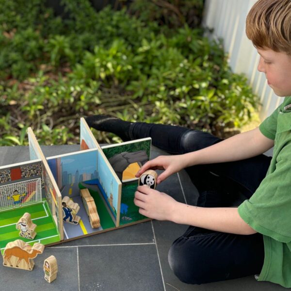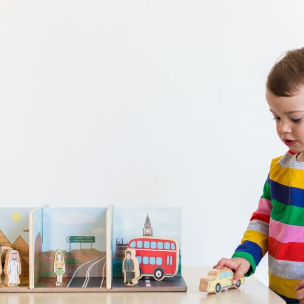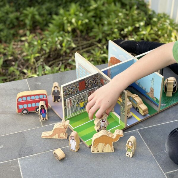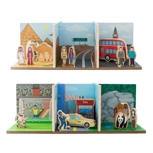 Travel the World, having adventures in all corners of the Globe from your very own playroom! Featuring 6 unique scenes worldwide, children can explore bustling cityscapes, arid deserts, and famous tourist attractions as they move and mix pieces to create their own imaginative stories.