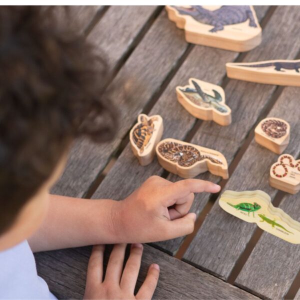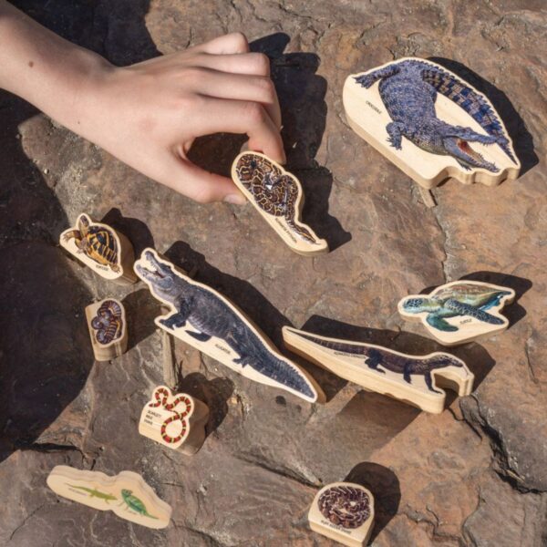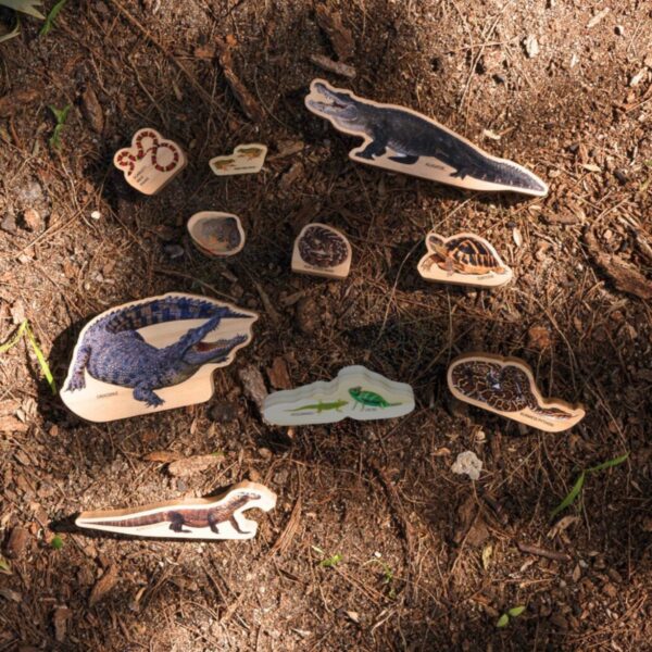 Reptiles in the Wild Set – Discover the Wild Side of Play…. Get ready for a slithering, scaly adventure with Reptiles in the Wild. Comprising of 9-pieces , Reptiles in the Wild is perfect for little explorers eager to discover the fascinating world of reptiles.