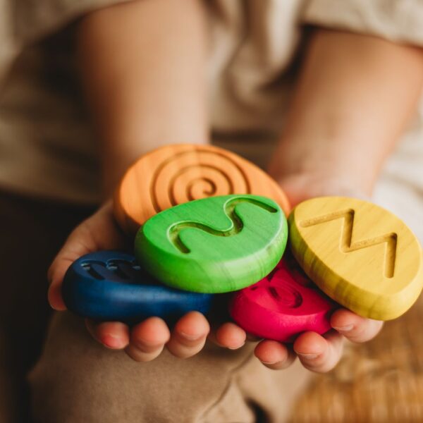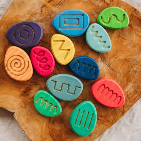 This colourful, wooden set of engraved pebbles is designed to make learning fun and engaging. Each pebble features unique patterns for tracing, allowing your little ones to explore early writing skills in a playful and engaging way.